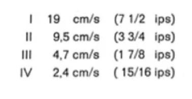 Nachstehende Tabelle gibt Ihnen darüber Aufschluss, welche Bandgeschwindig-keit man für die verschiedenen Zwecke wählt.