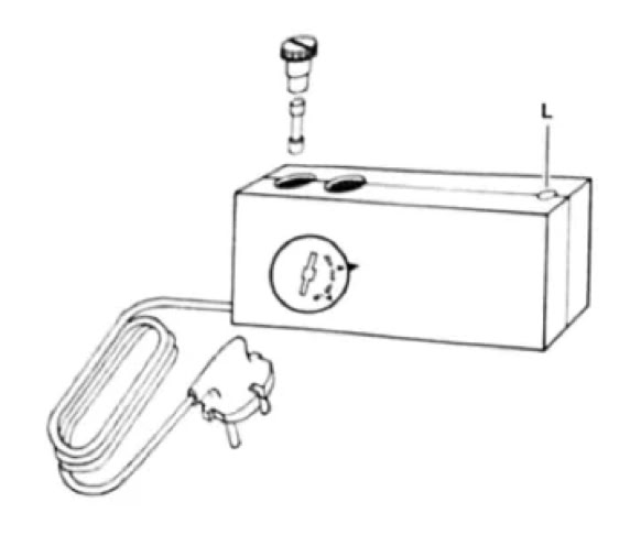 Beachten Sie hierbei bitte, dass bei Umschaltung auf 100—130 V die im Netzgerät befindliche Sicherung von 50 mA gegen eine von 100 mA ausgetauscht werden muss. Den Sicherungsstöpsel können Sie ebenfalls mit einer Münze herausschrauben.