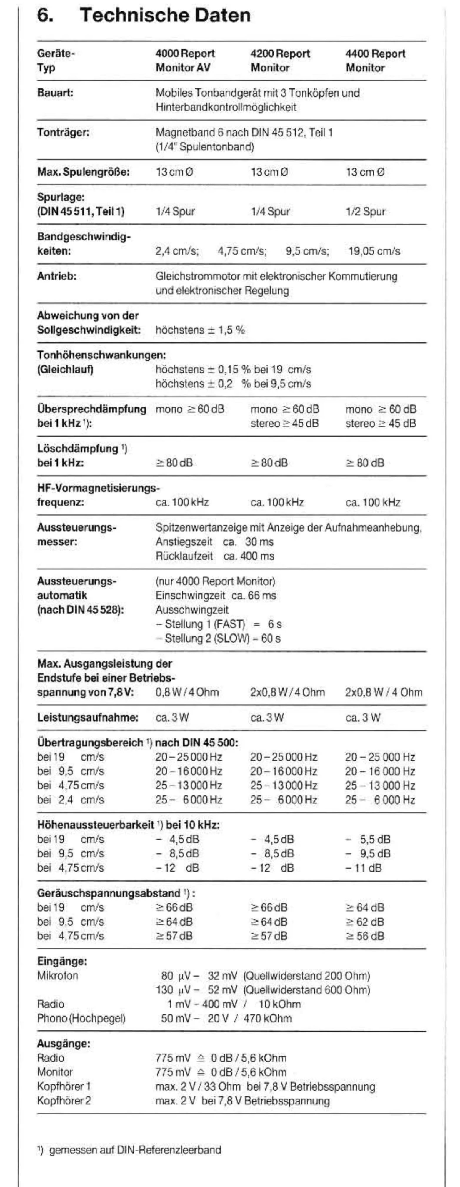 Aus dieser Einstellung resultiert beim Abspielen des Pegeltonteils des DIN-Bezugsbandes 19 H ein Wiedergabepegel von 410 mV (Report 4000/4200) bzw. 470 mV (Report 4400).