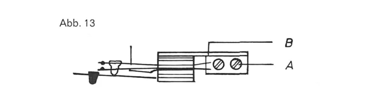 Der Kontakt (rel. a) muß in stromlosem Zustand des Relais geschlossen bleiben. Bei angezogenem Anker des Relais muß er geöffnet sein. Er darf jedoch erst öffnen, wenn der Anker zirka zwei Drittel seines Weges zurückgelegt hat, da sonst die Kraft der Haltewicklung noch nicht ausreicht. Die Einstellung erfolgt durch Biegen des Stützstreifens unter den Kontaktfedern. Der Abstand der Kontaktflächen voneinander soll in geöffnetem Zustand ca. 0,1 mm betragen.