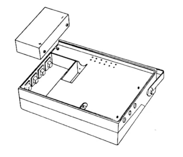 Das Netz- und Ladegerät kann über die Verbindungskabel Typ K713 bzw. K714 mit dem Tonbandgerät verbunden werden. Der Anschluss erfolgt an der seitlichen mit A gekennzeichneten Buchse. Etwa eingesetzte Trockenbatterien (Monozellen) werden automatisch abgeschaltet. Sie können aber auch das Netzgerät im Batteriefach unterbringen. Hierzu nehmen Sie den Boden des Tonbandgerätes ab und setzten das Netzgerät so in das Batteriefach, dass die beschriftete Seite nach oben kommt und das Netzkabel gerade durch den Ausschnitt am Boden herausgeführt werden kann.