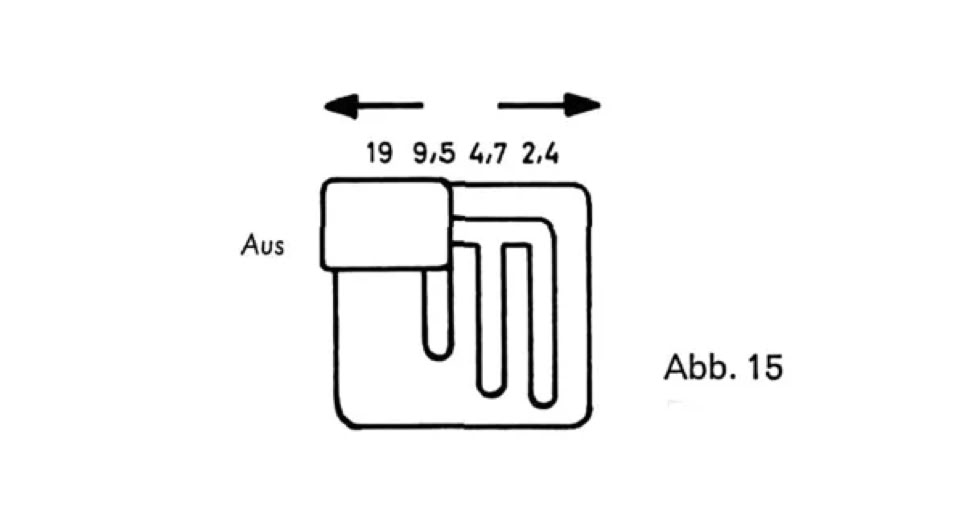 Bandgeschwindigkeit 19 cm/s einschalten und anschließend auf Bandgeschwindigkeit 2,4 cm/s umschalten. In beiden Geschwindigkeitsstufen müssen die Kontaktfedern der Schiebeschalter genau über den entsprechenden Messerkontakten stehen.